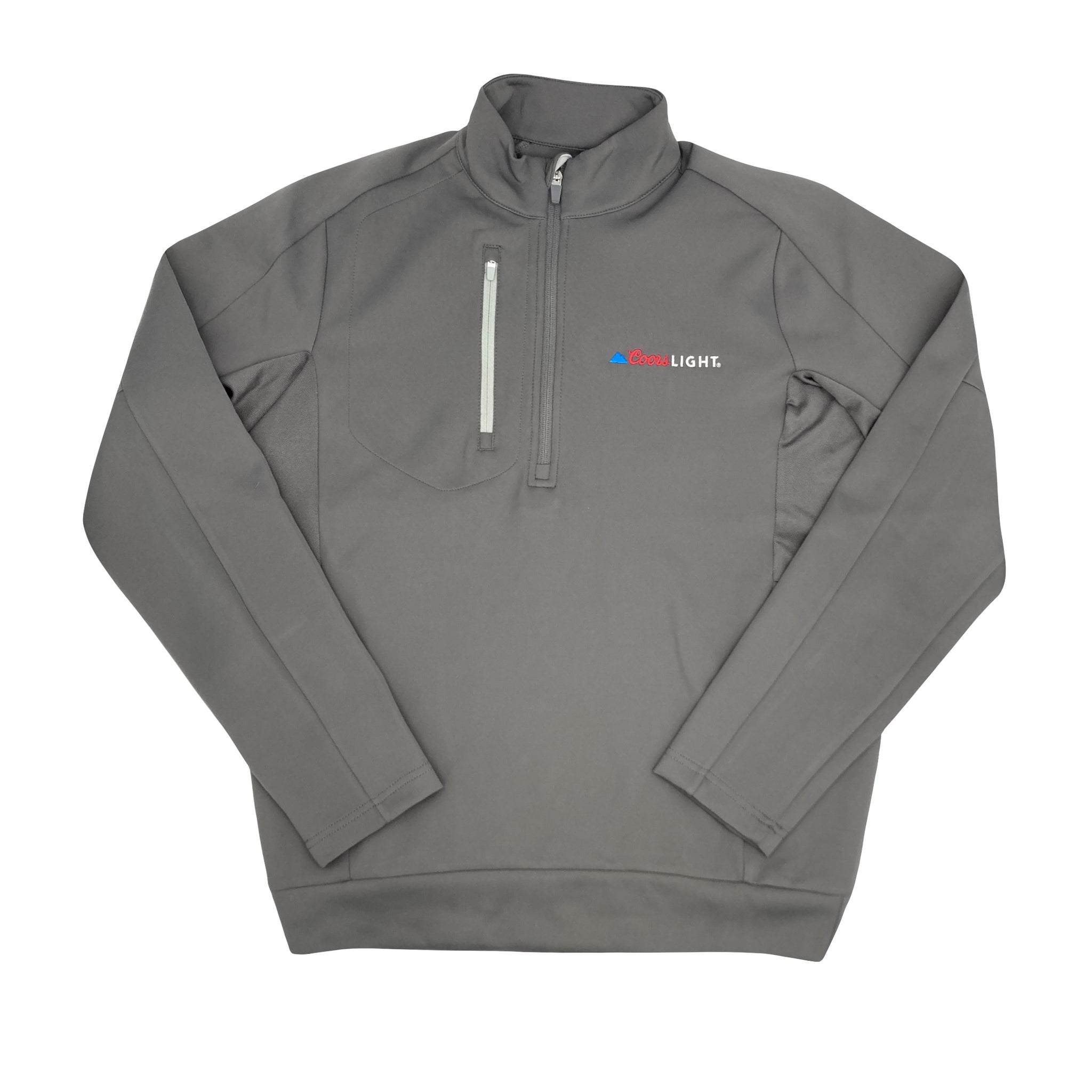 The contrast on the zipper makes this pullover unique. A lightweight 1/4 zip pullover from Antigua. 90% polyester, 10% spandex interlock fabric. Chest pocket with contrast zipper, and contrast storm flap.