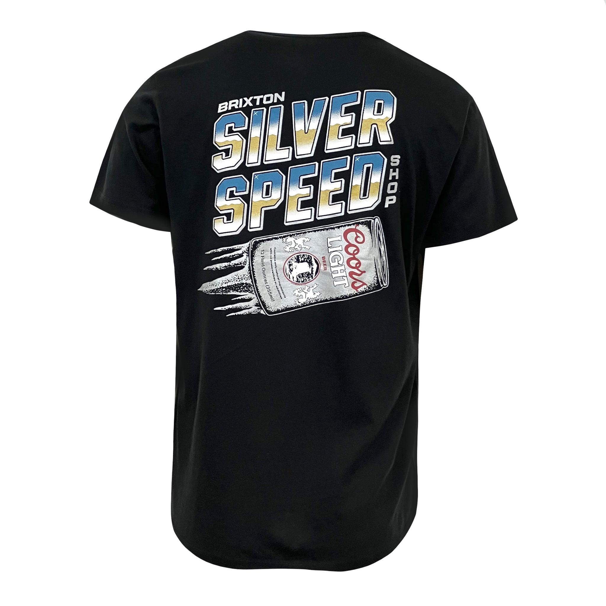 Welcome to the Silver Speed shop. From the Brixton x Coors Light racing collection, this tee is on a super-soft 100% cotton garment. Shirt is a standard fit with some stretch to it.